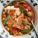 Roasted Cod, Tomatoes and Chickpeas