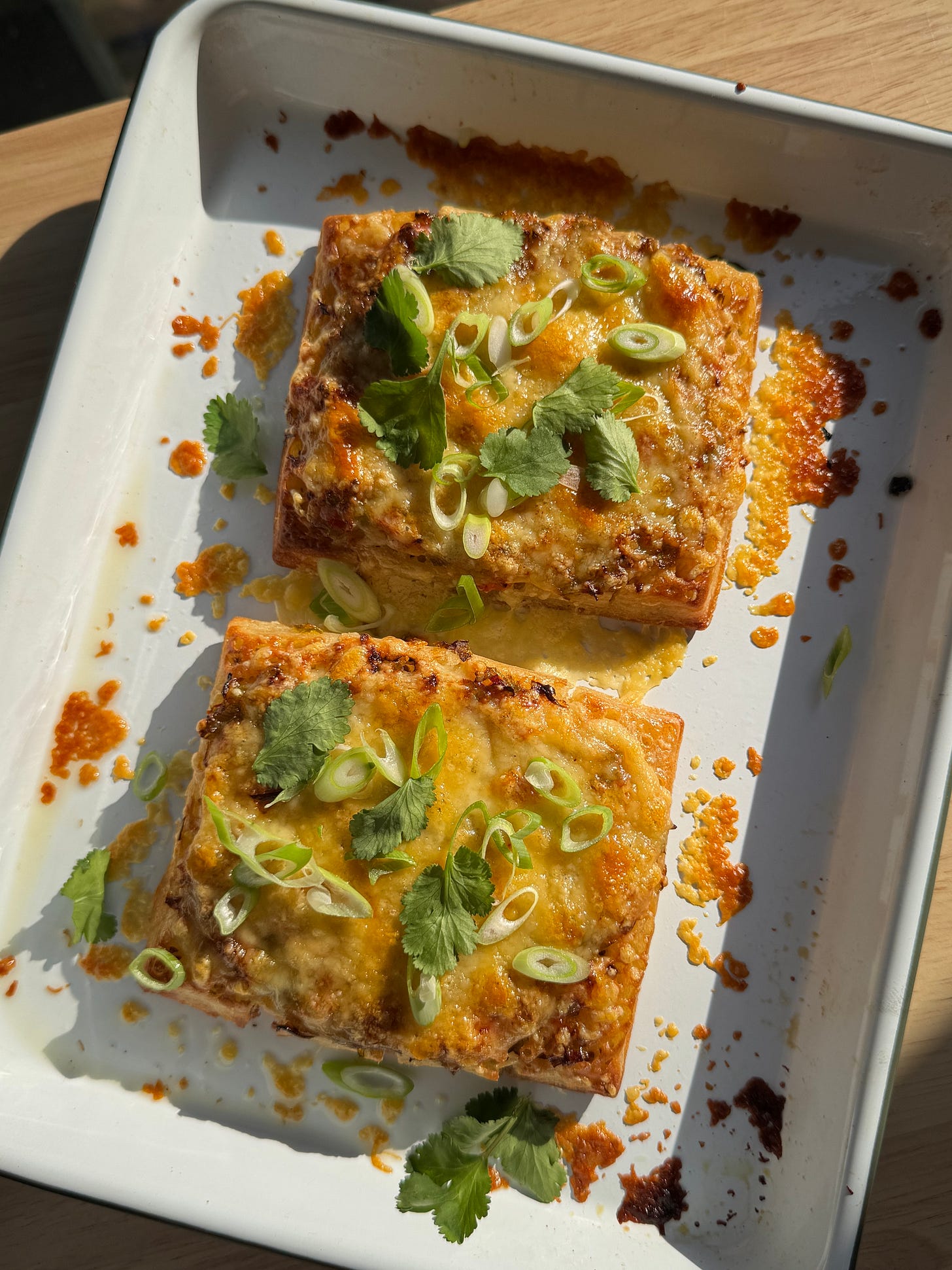 Chilli Cheese Loaded Crumpets with Homemade Chilli Oil