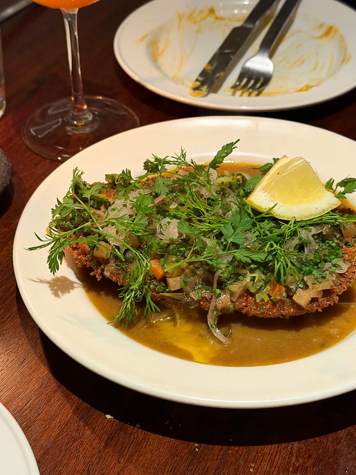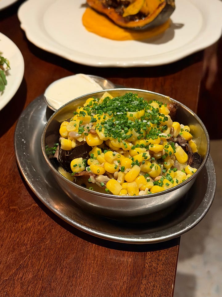 We tried a whole range of dishes from the menu, but our favourites were the fire-grilled fermented koji flatbread with white bean purée, bhel puri, pickled raisins and curry leaf oil. There was also a smoky tofu dip on the specials which we had with the flatbread, and it was insanely good. If it’s on when you visit, it’s a must-try. From the mains, the artichoke schnitzel with pickles and curry sauce was a really clever bit of cooking and opened my mind to how inventive we can be with food without getting overly technical. But the real star of the show, which we couldn’t leave a morsel of even though we were completely full by this point, was the sweet potato “yaki-imo” with corn miso butter and sunflower seeds. Genuinely one of the most delicious, warming things I’ve eaten in a long time, and one of those dishes that would bring you back to a restaurant for that alone. The team told us it’s a staple on their menu, and I can absolutely see why. If you’re in the area, or fancy a Sunday stroll down Portobello Road followed by lunch, Holy Carrot is definitely the spot.